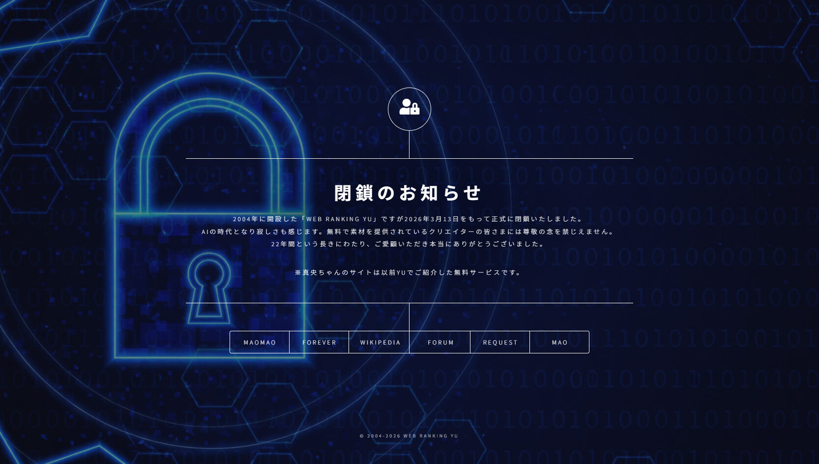 本当にね、時代の流れは残酷な時もあります。閉鎖したくなかった。Web Ranking YU